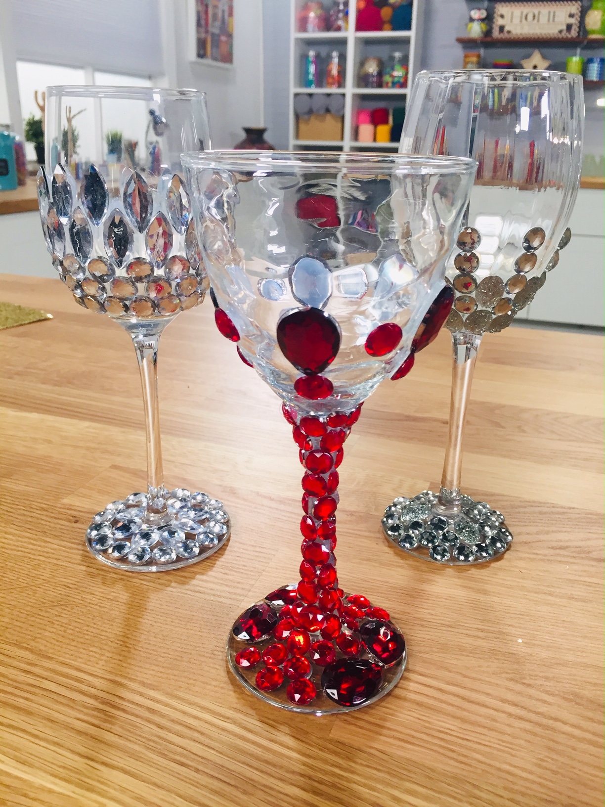 Your favorite wine glass can get a new look! Just glue flat back gemstones on and it’s bottoms up all year around.