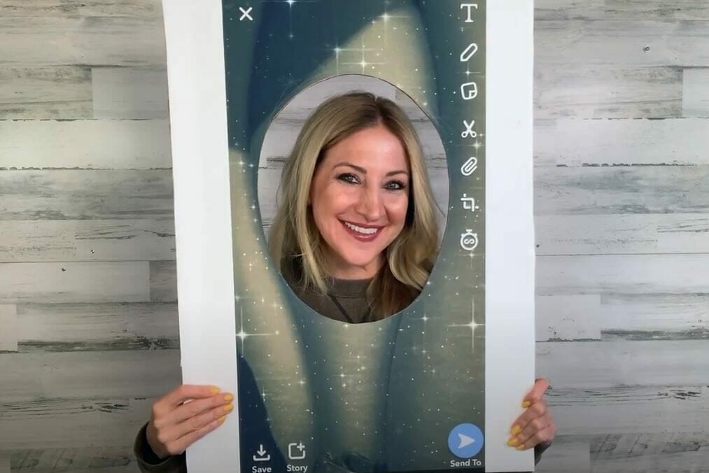 An Instagram filter costume is so on trend and easy to do. Start by taking a screenshot of your favorite filter on Snapchat. Next, have it printed on large poster board. Then cut out an oval in the center for your head. And paint your face to match.