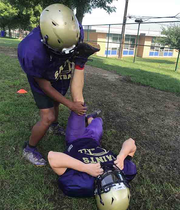 So this summer, leading up to his final season of high school football, he made sure others knew who he was. He worked hard in the off-season, He trained with best friend and teammate Devin O’Malley, the Saints’ quarterback. Andella put on 20 pounds and became noticeably stronger.