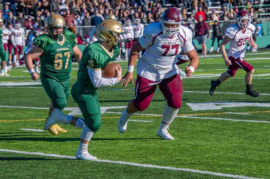Like La Salle, the Hawks also feature a three-year starter at quarterback. Once again, senior Tom Comella is the conductor behind Hendricken’s spread attack. Similar to La Salle’s Lussier, Comella is a threat to take off and run.