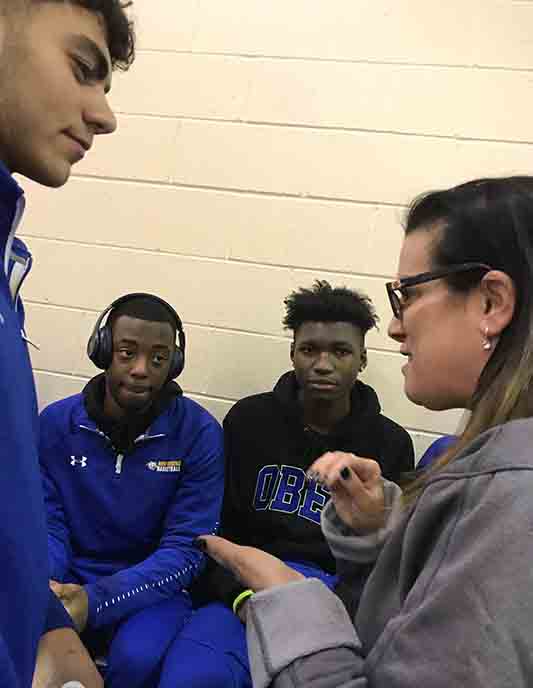 Capaldi arrives at the school from her Smithfield home each day at 7 a.m. – long before the first school bell rings. Her door is open for the players – or any students – who want to talk, receive tutoring or just say good morning before they start their day. Several hours later, when the final school bell rings, the door swings back open and it’s much of the same.