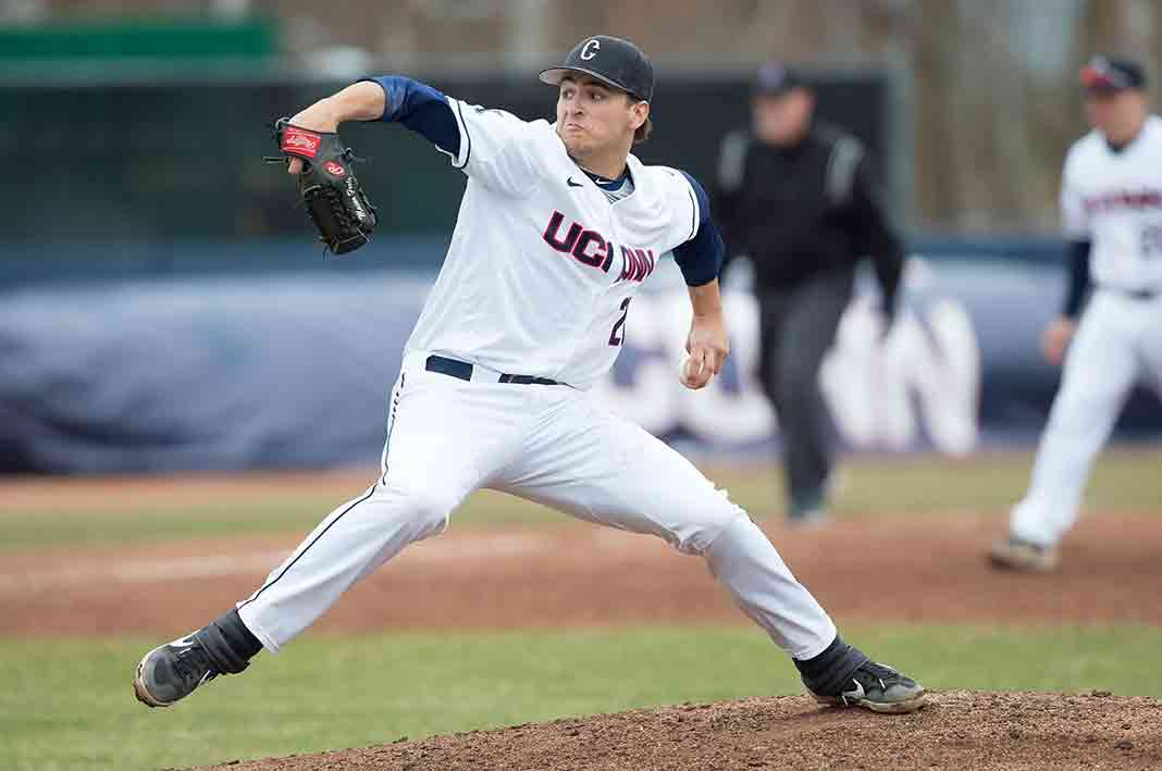 A standout left-handed pitcher at The Prout School who departed the University of Connecticut as the baseball program’s all-time strikeout leader (278 in 260.1 innings), Feole underwent Tommy John surgery not long after the San Diego Padres selected him in the 11th round of the 2019 Major League Baseball Draft.
