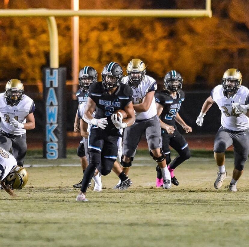Allen produces in many capacities for Highland. “I would say I’m an athlete. It is more of a blessing on my part. I love to help the team win.” Allen juggles different positions weekly He’s taken snaps at Strong Safety, Free Safety, Wide Receiver, Punt Returner, Kick Returner, and the Up man on the punt team. In two years, Allen has received player of the game honors ten times. Recording 90 tackles and 50 solos with five interceptions, Ammon is the Hawks’ Swiss Army Knife. Racking up nine scholarships offers from universities such as Idaho, New Mexico State, and Eastern Michigan. The captain of the defense still has his eyes set on finishing this season strong.