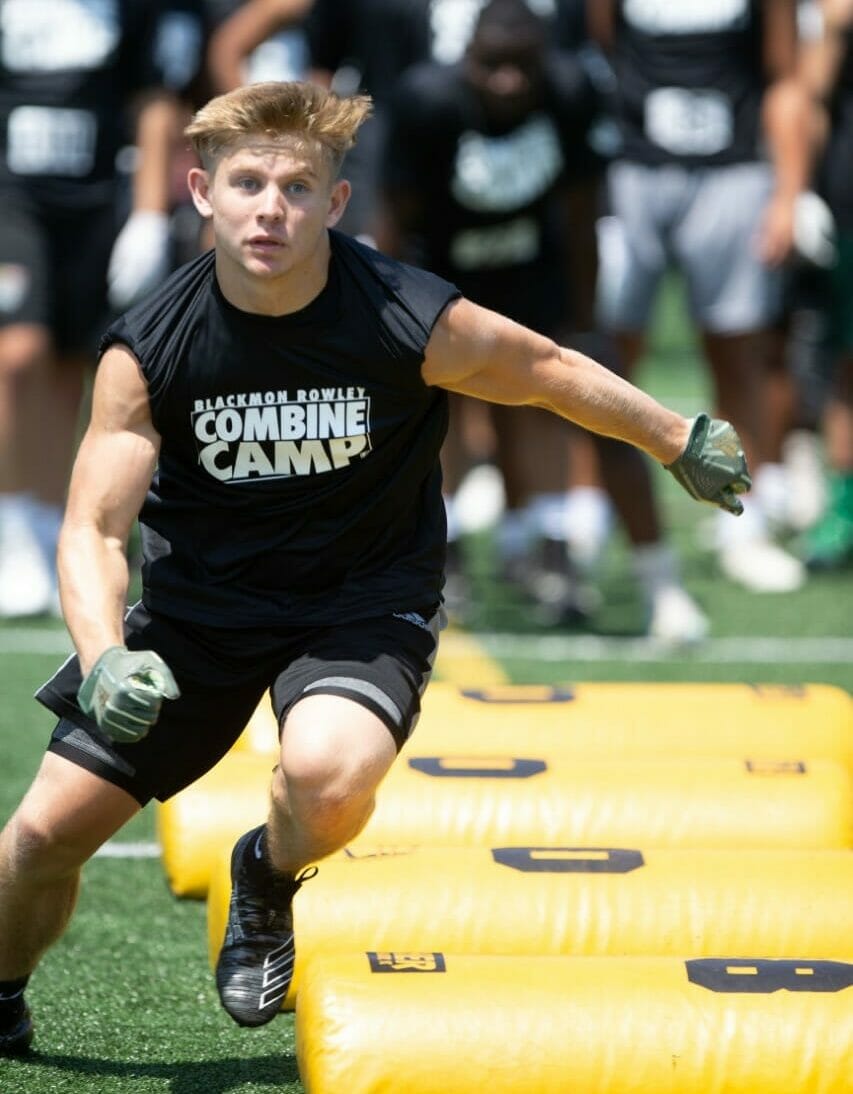 To prepare for their final high school season, the twins attended more than a half dozen football camps and combines this summer, including the second annual Blackmon/Rowley Combine – directed by 12 year NFL veteran Will Blackmon and Kyle Rowley a former professional who played for more than a dozen years in Arena Football League. Blackmon played at Boston College, Rowley at Brown. Both were stars at Hendricken.