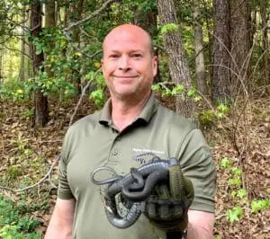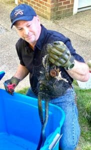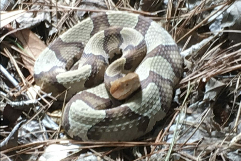 In our area, we most commonly see the Northern Copperhead and on the southside both the Copperhead as well as the Eastern Cottonmouth (Water Moccasin). There are small populations of Canebrake Rattlesnake that are found in Southeastern Virginia as well but are rare.