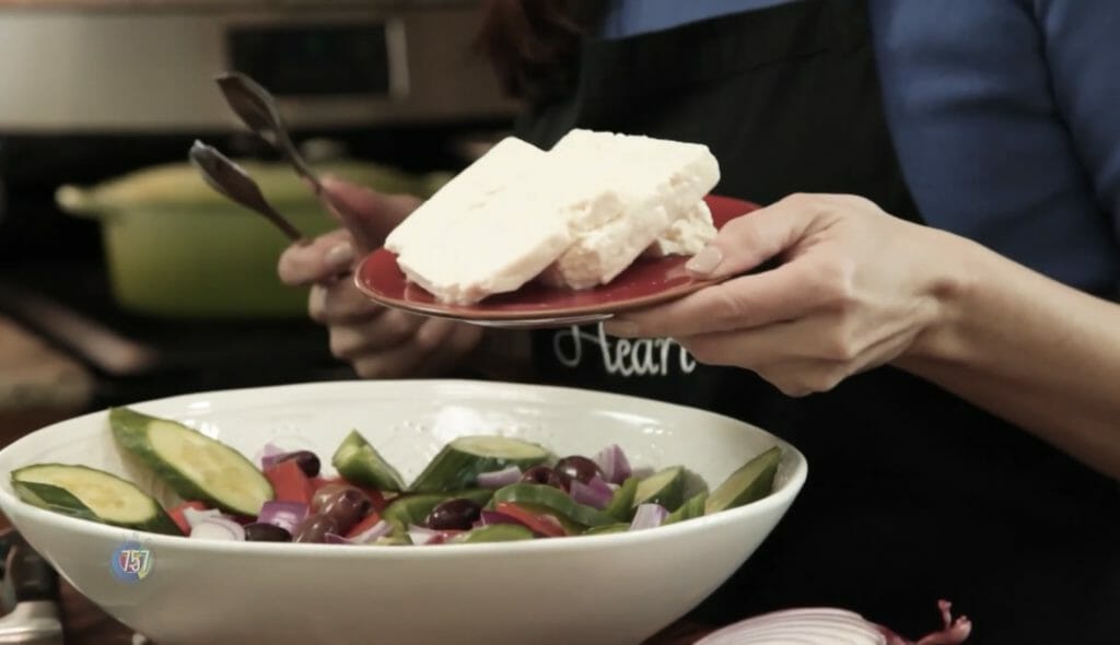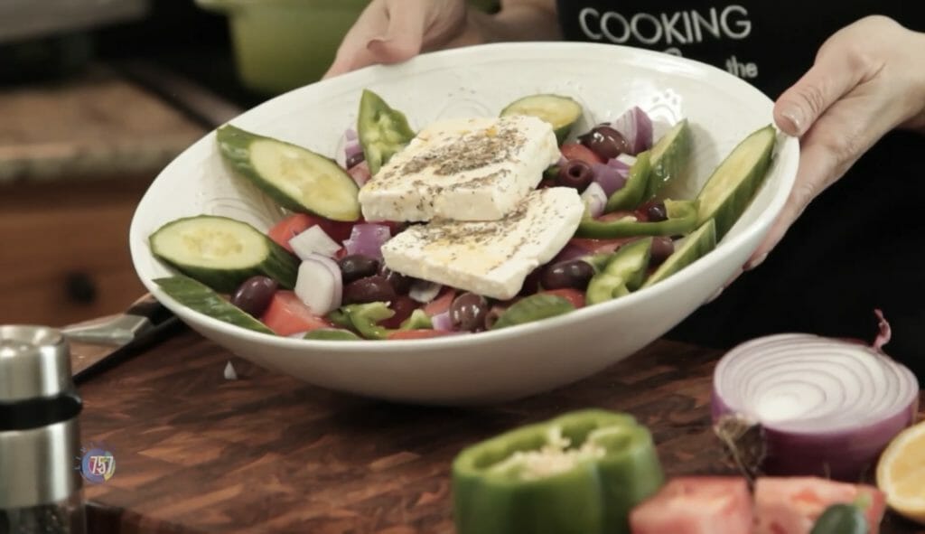 Our friend Karen Endsley from Cooking From the Heart is back in the kitchen, and this time she is chef-ing up an authentic Greek salad!