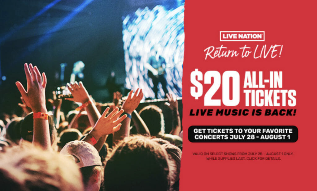 And now, until August 1, you can get $20 All In tickets. The $20 tickets (which include taxes and fees) are available for a limited time for select concerts.