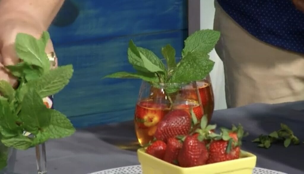 Cap two strawberries and place in the bottom of a wine glass. Pour a splash of orange liqueur, such as Grand Marnier, and using the back of a spoon, mash. Fill the glass with a well-chilled, crisp, white Virginia wine and garnish with a mint sprig.