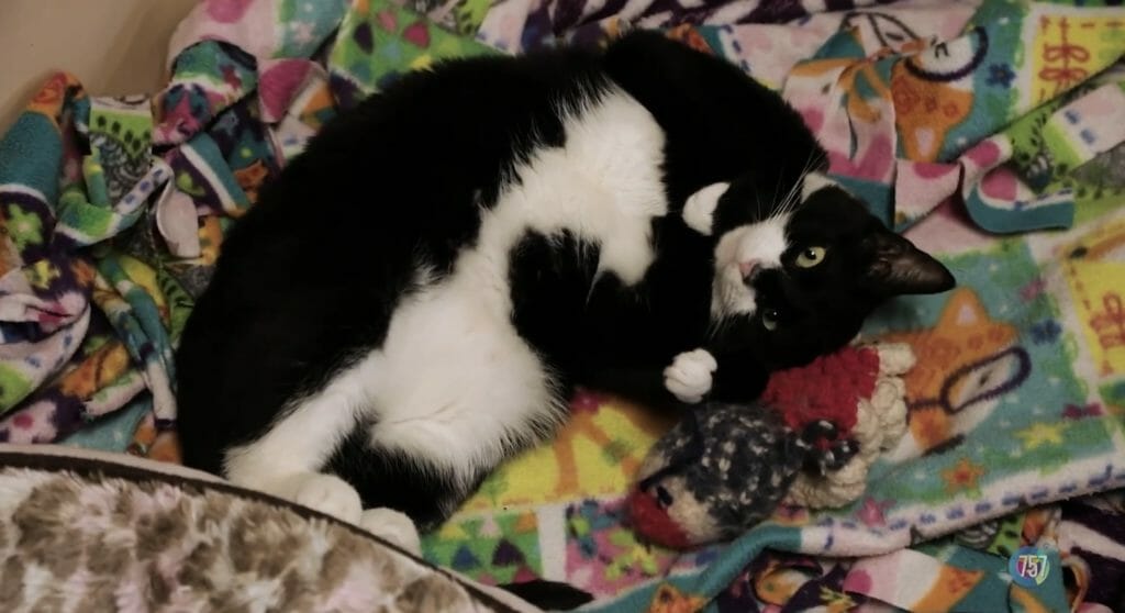 Next we meet “Scoop,” an adorable kitten who came from SCAT Incorporated, a rescue out of Gloucester, Virginia. He is so fun and playful!