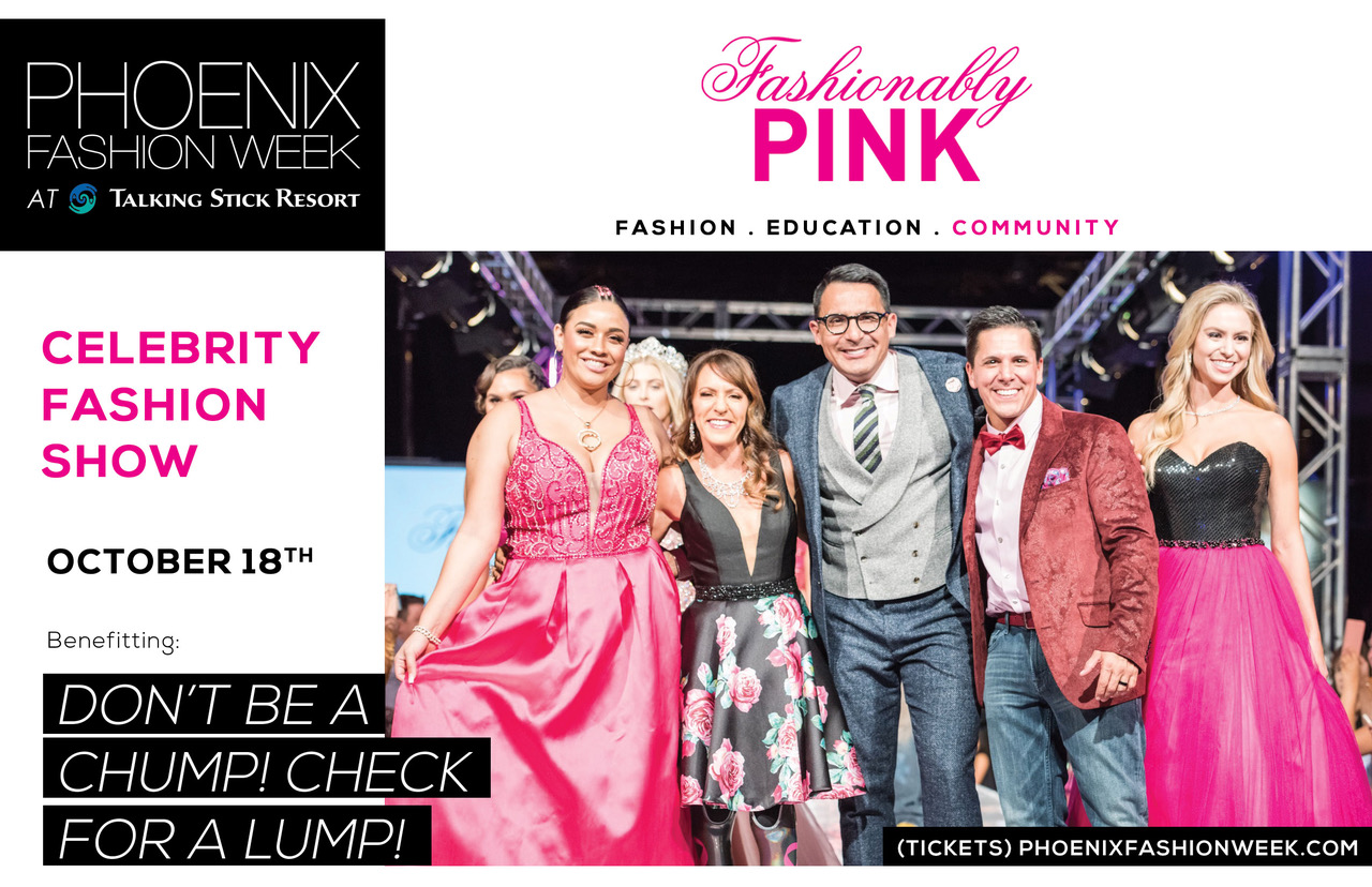 Phoenix Fashion Week’s signature Fashionably Pink Celebrity Fashion Show benefiting local breast cancer non-profit Don’t Be a Chump! Check for a Lump! kicks off Thursday, October 18th.
