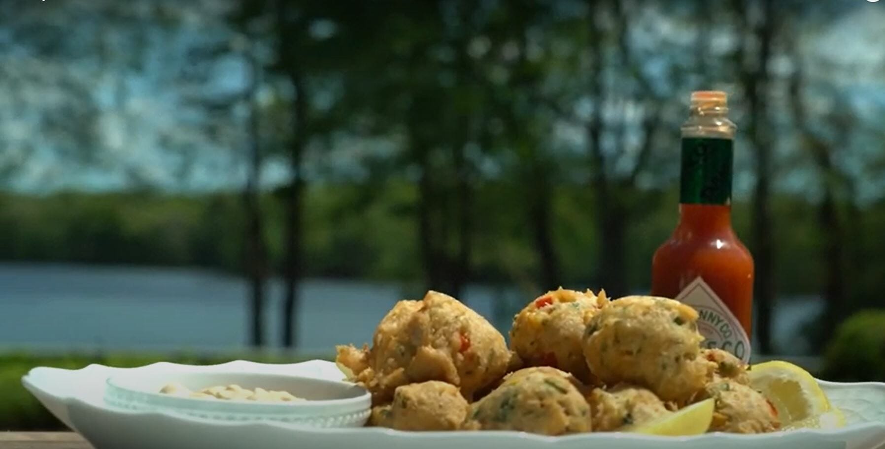 NR – (3:09) And now through the magic of television, let’s bring in some hot oil. Well, that worked out well. So we’ve got this ice cream scoop and you want to fill it about three-quarters of the way for this is a great tool for making consistent size fish cakes. If you don’t have it, a spoon works just fine. We’re frying it at about 325 degrees. Now that is ideal. What it’s going to do is it’s going to make the outside crispy but it’s going to cook everything all the way through. I think you want about six minutes on these and look at how beautiful they are. Now if that’s not Rhode Island, I don’t know what is. Even though we’re deep fat frying, that does not mean that it needs to be greasy at all. Deep fat fried foods can be very, very dry on the outside, very crispy and light and fluffy all the way through like a donut. Now once that comes out, you’re going to want to season with a little bit of kosher salt. And now we’ve got to plate them up. I’m going to serve them with some tartar sauce that I made from mayonnaise, ketchup, mustard, chop pickles, parsley, and I added a little bit of Tabasco, just to make it a spicy tartar sauce. And I’m going to hit this plate with these gorgeous crispy, light delicate fish fritters that are so beautiful that they’re making me lose my concentration. Couple of lemons outside of Tabasco. Oh, there’s a Rhode Island fish fritters everybody. So these came out pretty great and you guys are pretty great for joining me thanks as always for doing so. And until we meet again. Keep on Cookin.
