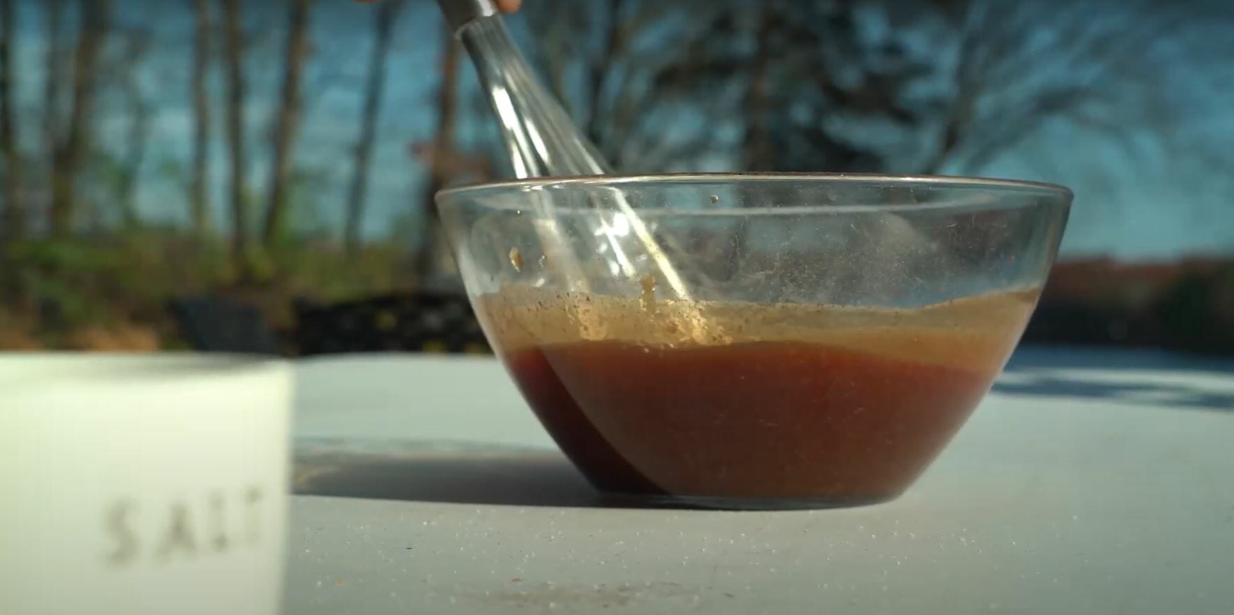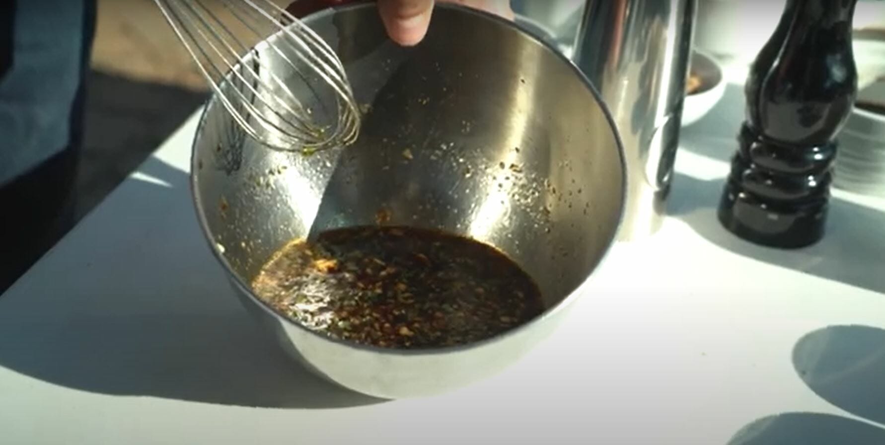 3:08 So it’s December and obviously we like to cook seasonally appropriate. That’s why this maple barbecue is going to be outstanding. To get started. We’re going to go in with a little bit of ketchup, that’s going to be the base of our barbecue sauce. Usually you would put molasses in a barbecue, but we’re going to do the maple syrup, which is just absolutely sweet and adds that caramel color. Some wish to share very traditional. A little bit of apple cider vinegar, also very traditional, some brown sugar. Touch a soy sauce, it’s going to add a nice little salty note. We’d go in with some espresso. And then our dry ingredients. We have garlic powder, paprika, onion powder, and also a little bit of chipotle powder, a pinch of salt and a cracker pepper. All right, let’s go out and give this a whisk. Blend all those ingredients together. And there it is. Two hours later. These short ribs are done. They are sizzling. And they smell amazing. Let’s go take a peek at what they look like. Oh my talk about meat candy. I mean, that’s a short rib. Alright, time to put two and two together. We’ve got this maple soy barbecue. You just want to put enough on you don’t want these swimming and barbecue sauce. You know, as beautiful as those look, I still feel like they’re missing something. I think it’s time we called in the big guns to help bring these to the next level. In my talented wife, Tracy, who’s the dynamic chef of erode, it is going to turn these short ribs into a knockout. Alright, kid, what do you got?