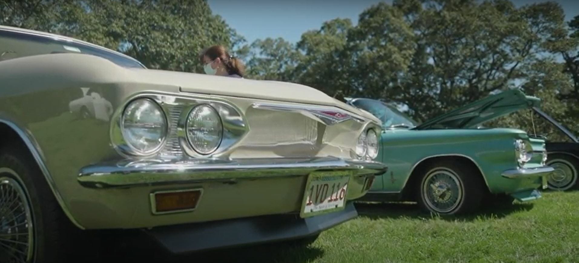 The Bay State Corvair Club is the largest club in Massachusetts with 90 members. They enjoy gathering outdoors to see and admire the Corvair collection.