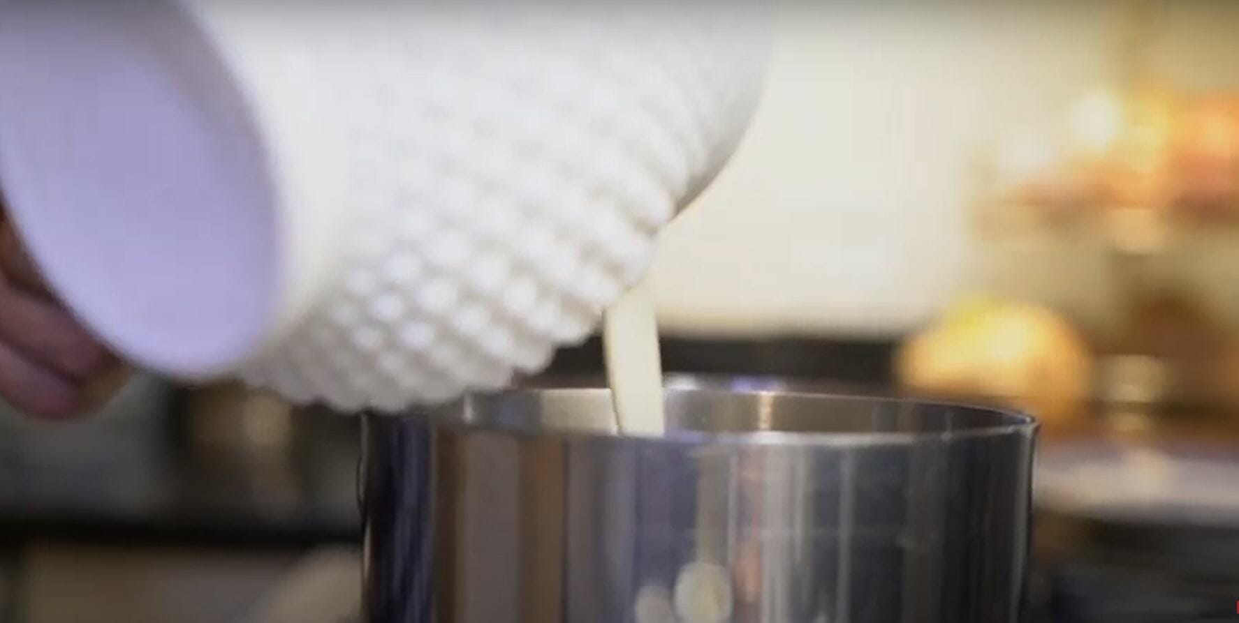 1:24 Alright guys, next step is going to be to make this rich Mornay style sauce. So I’m going to go in with some heavy cream. We’re going to go in with about three cups. Now we’re going to turn the heat on like medium high because you got to be real careful a not to scorch it be not to let it boil over. While it’s heating up even before it’s boiling, feel the bottom of the pan. You want to make sure that the scorch monster is not peering his ugly head out. Alright, so we’re going to let that simmer we’re going to check our potatoes.