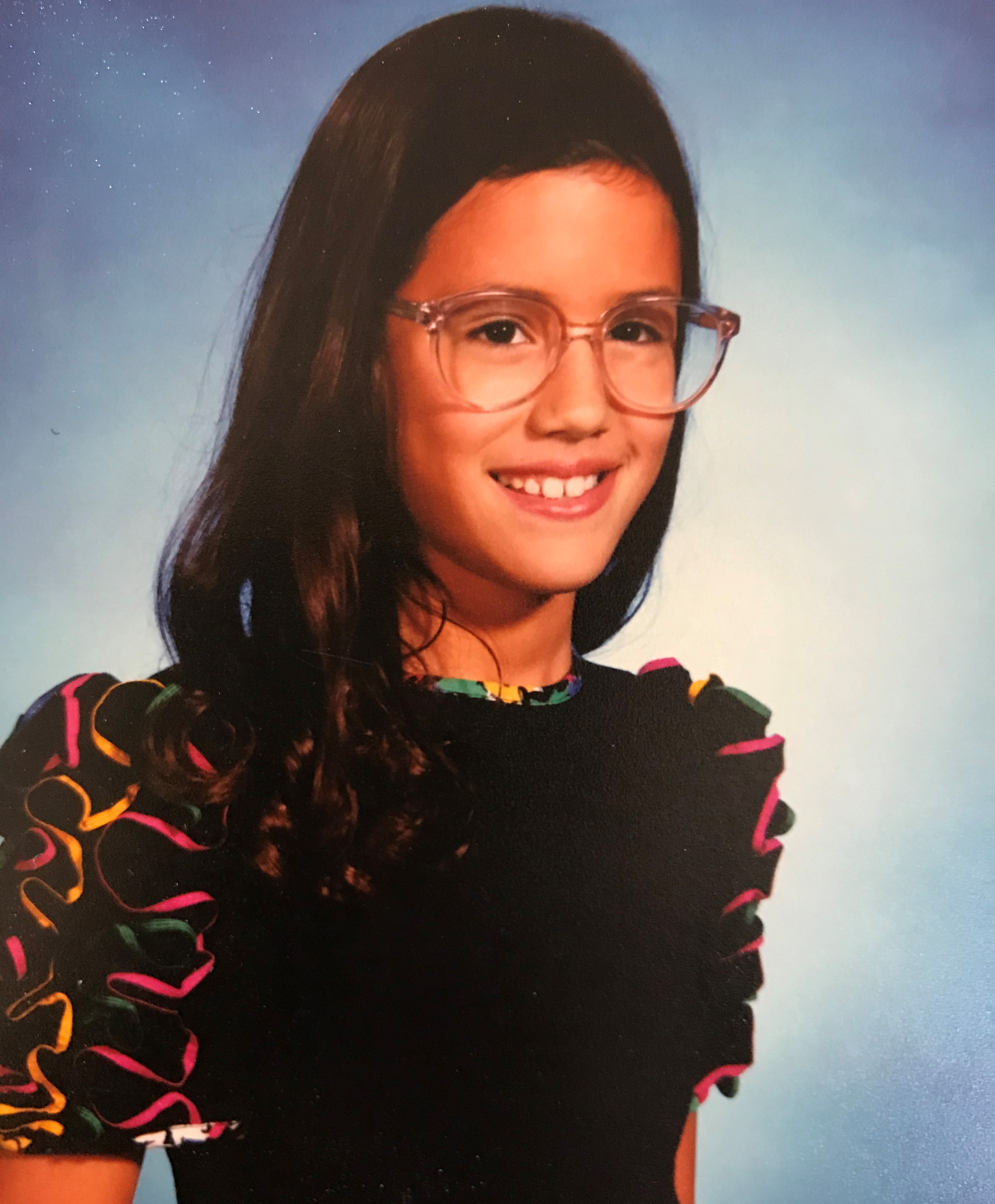 Ahhh yes, my first pair of eyeglasses. I was eight years old and in the fourth grade when I began wearing prescription glasses. I still remember going with my mom to the eyeglass store to pick them out, I was so excited. Those pink plastic frames with tiny purple hearts in each corner opened up a whole new world for me, visually speaking. It was quite a significant milestone for my then fourth grade self. 🙂