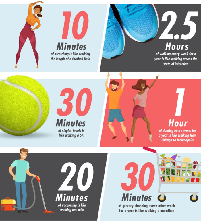Here’s a super fun infographic, provided by the American Heart Association, that will remind you every step, and move, counts!