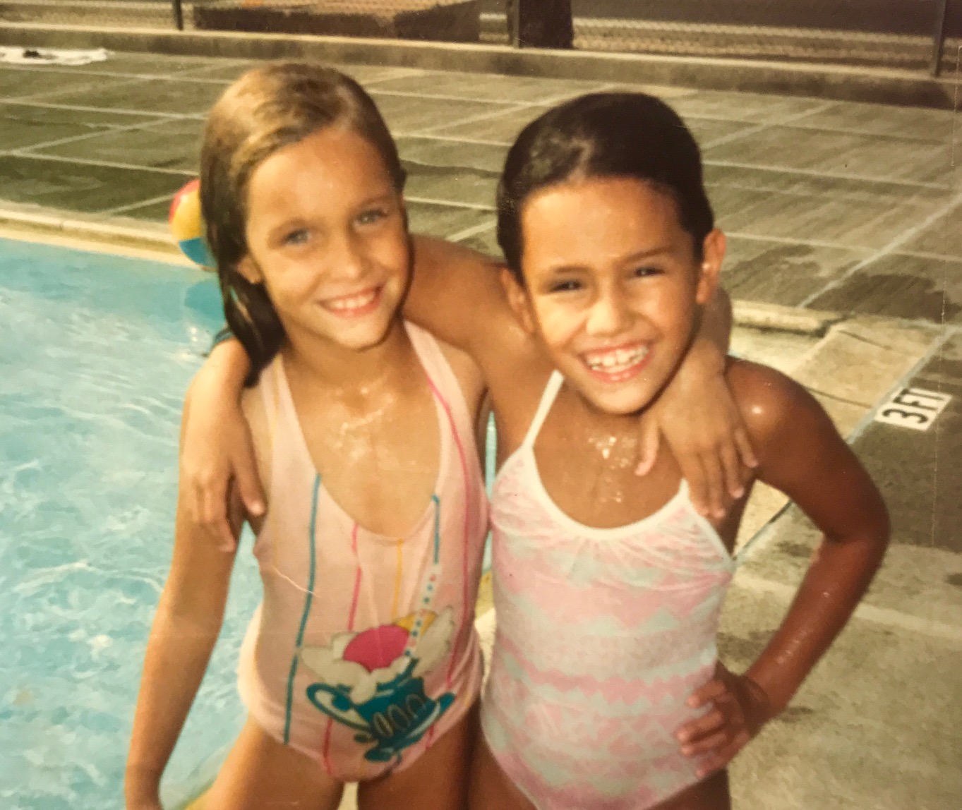 Swimming at the pool several times a week was always a fun summer tradition. Cheerfully posing at Sunnyslope Pool alongside my friend, Miranda, at age 7.