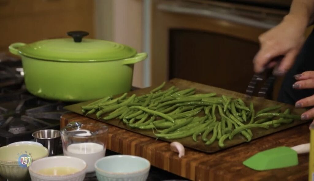 Instead of mixing in cream of mushroom soup, Karen is teaching us how to make a rich and creamy mushroom sauce to go over the green beans.