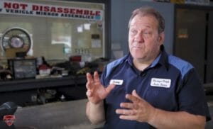 Jacob then takes us to Tysinger Audi of Hampton. Here, we meet Master Technician Allen who shows us some of the new tech used to make certain services more efficient. Demonstrating the drive train table, Allen explains how it’s used to expedite the process of replacing a motor and transmission. This piece of equipment costs around $10,000, but is totally worth the price when compared to the hours saved in getting the job done faster!