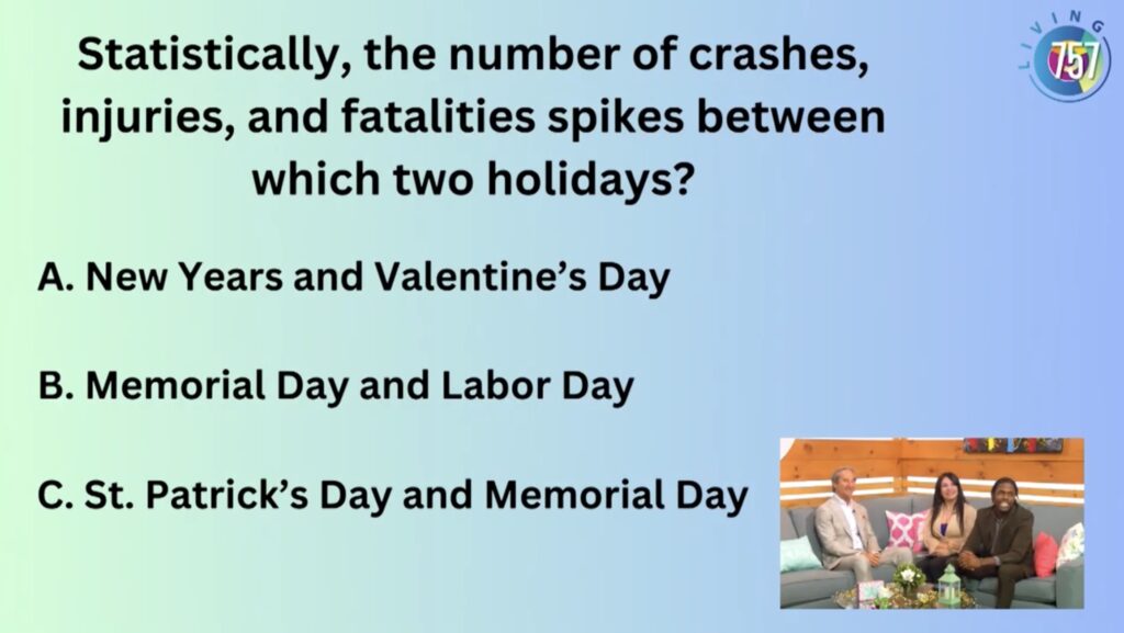 Watch the full video to see if they knew the answers to all of these questions about the 100 deadliest days on our roads. Also- do YOU know how to protect yourself during the time of year with the most accidents?