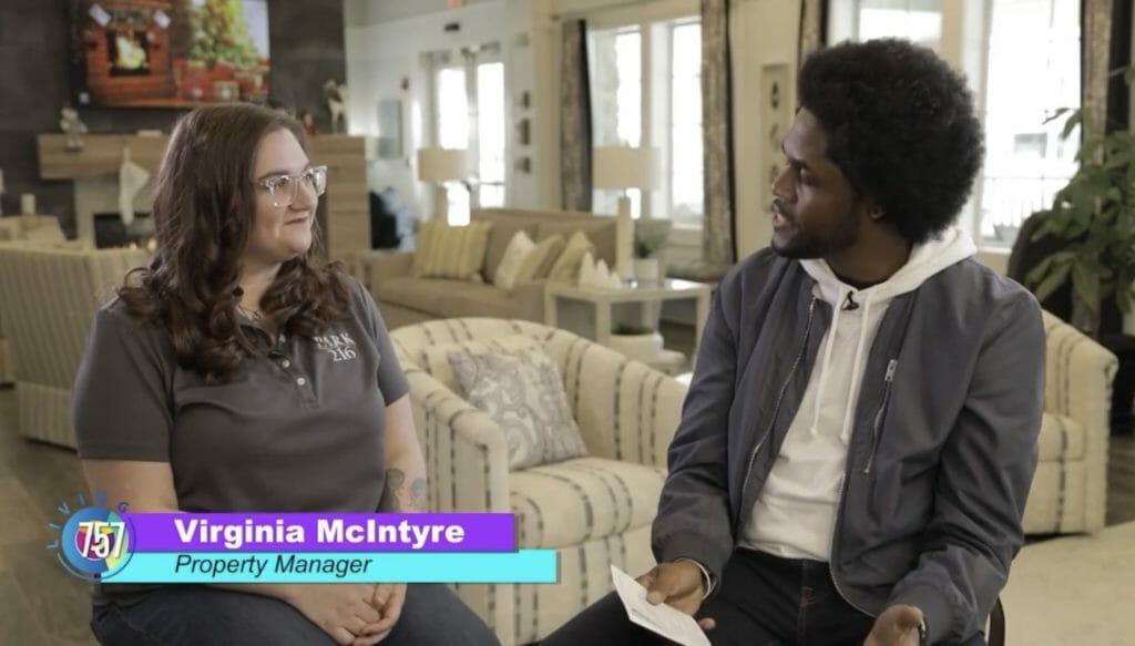 He sits down with Virginia McIntyre, one of the property managers at Park 216. Quincy admires the decor, which is done by the team at the complex. They go all out for every holiday, which is an amazing personal touch!
