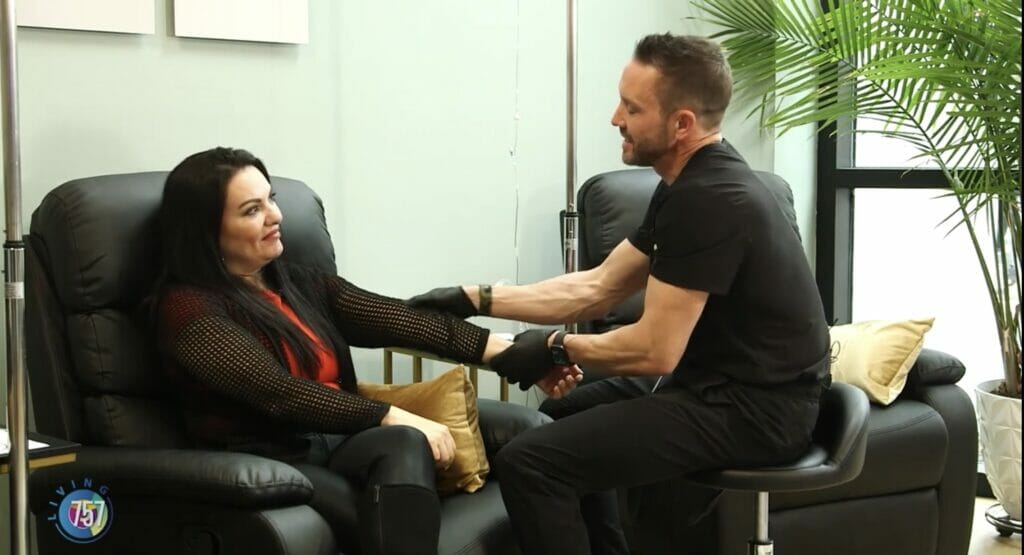 Patricia got the chance to experience one of their IV treatments. She wanted to boost her energy and receive a little bit of something for her hair, skin and nails. Jason mixes her up a perfect combination of a vitamin B complex, biotin, Vitamin C, and Lysine! IV’s are really nice because you get 100% of the vitamins you take.