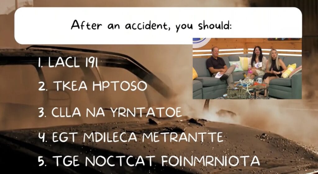 Since we have discussed these steps once or twice on the show previously, production decided to give the ladies and Attorney Paulson a little quiz on post-accident steps!