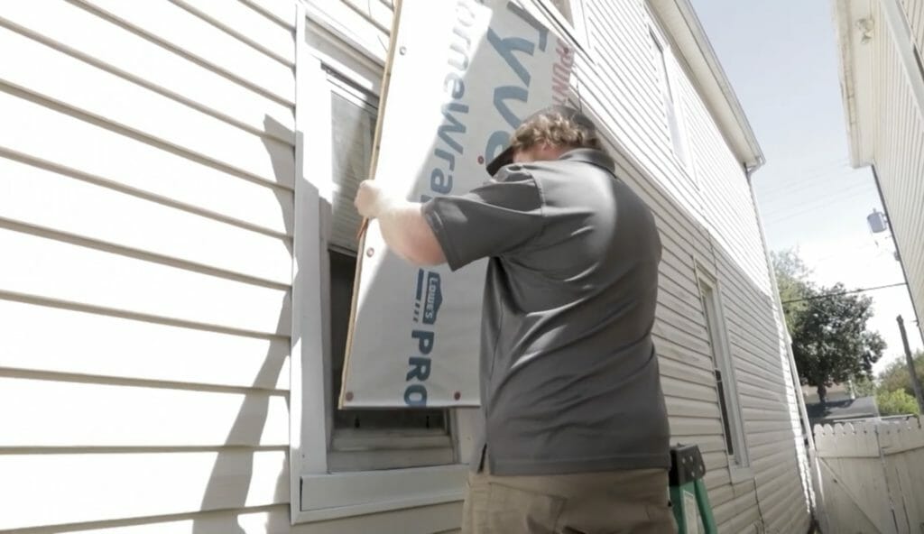 From there, they secure the property by boarding up any doors, windows, or holes that need it- and by tapping the roof if it is necessary.