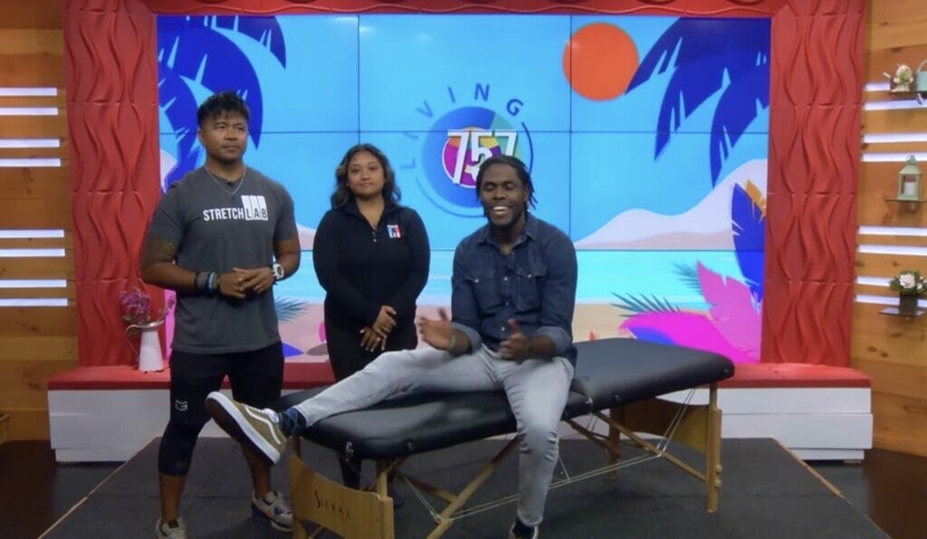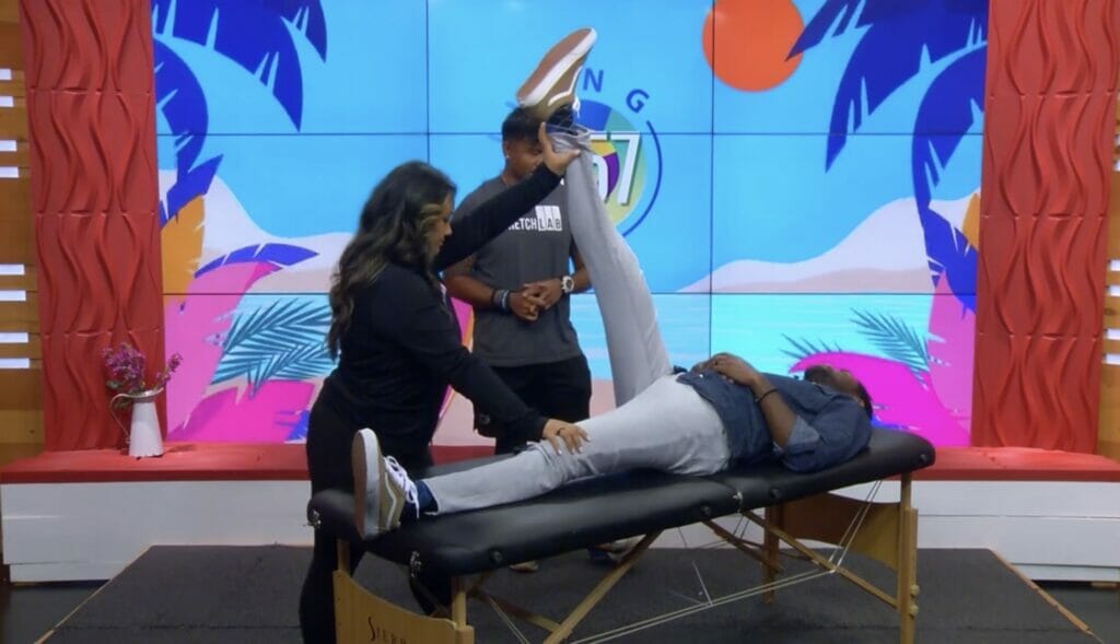 Quincy tells Diane from Stretch Lab that he can’t touch his toes! So the two decide together that a hamstring stretch would be good for Q.