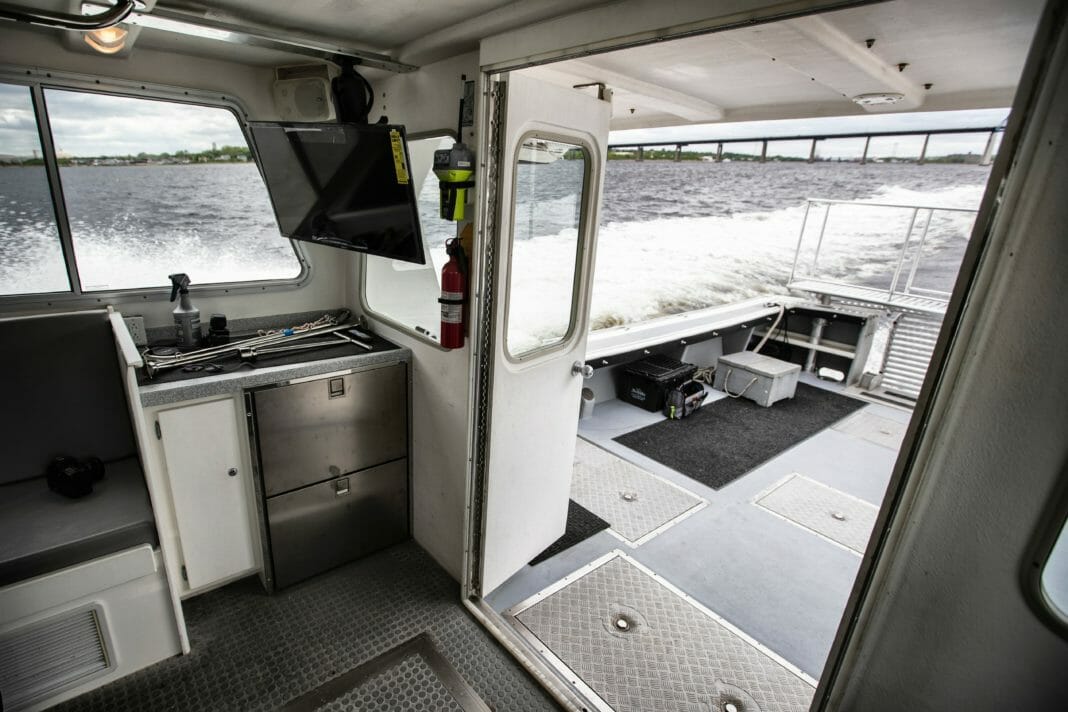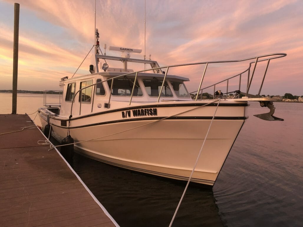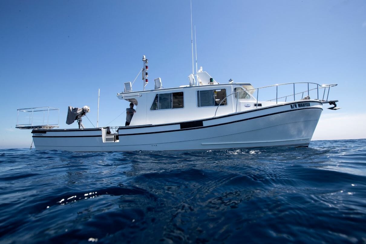 Sometimes scientists from the Institute will come aboard the 45-foot Research Vessel R/V WARFISH custom designed specifically for wildlife filming.
