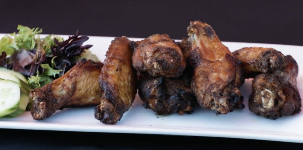 The wings, although a bit quicker to make, are smoked for 4 hours with a combination of oak, apple or cherry wood which gives them an incredible smokey flavor.