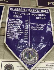 Under the banner that serves as home to Classical’s 1,000 point scorers is the school’s mission statement. A portion reads: “Classical encourages students to pursue academic, athletic , artistic and personal growth so that they will experience success in college and universities…”