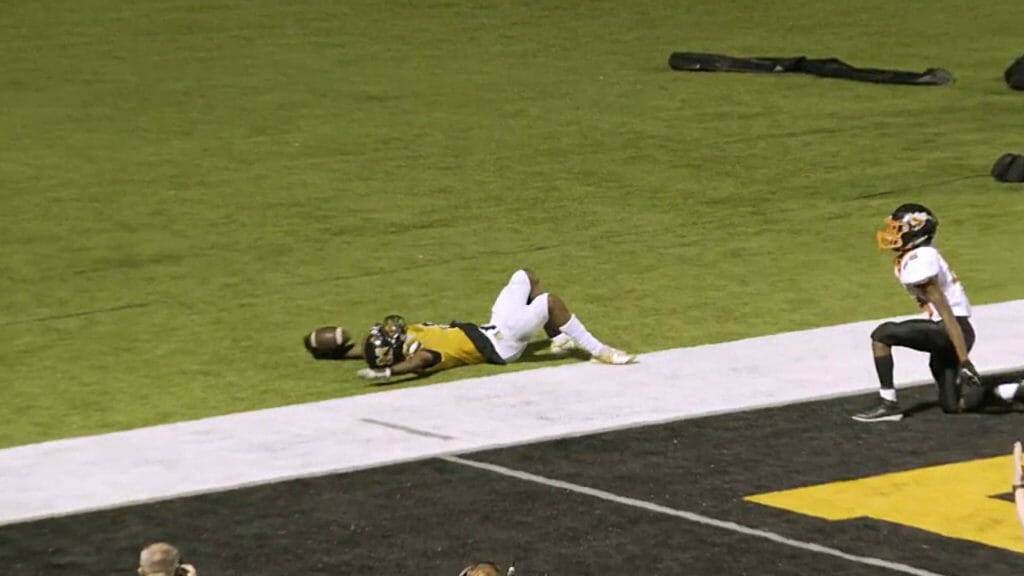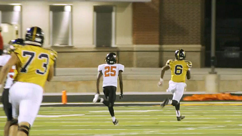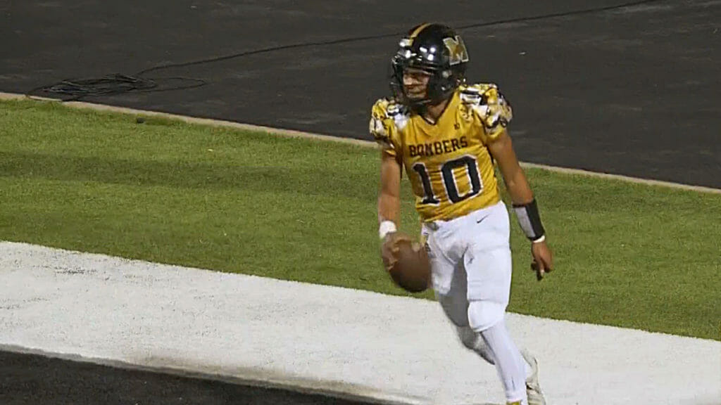 In the second quarter, Midwest City began to take control after getting that interception. DeAngelo Irvin connected on a 41 yard touchdown pass with Oklahoma State commit Makale Smith. The Bomber extra point attempt was blocked making the score 7-6 in favor of the Hornets. On the Bombers’ next possession, Irvin on a quarterback draw ran 27 yards to put the Bombers on top.