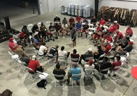 “Each kid stands up and everyone in the circle talks to that kid with words of affirmation,” said Reed. “Once all the kids do that, we let the dad address their kid and that’s always a very impactful, emotional time. Then it ends with that kid who’s standing up getting to speak back to his dad.”
