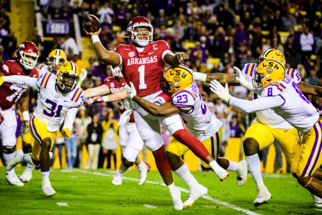 Arkansas, who picked up bowl eligibility with last week’s win will visit Alabama next week, while LSU hosts Louisiana-Monroe.