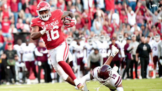 FAYETTEVILLE, Arkansas – The turnaround under head coach Sam Pittman for the Arkansas Razorbacks continues. The Hogs knocked off SEC rival and #17 Mississippi State 31-28 in a thriller to qualify for a postseason bowl.