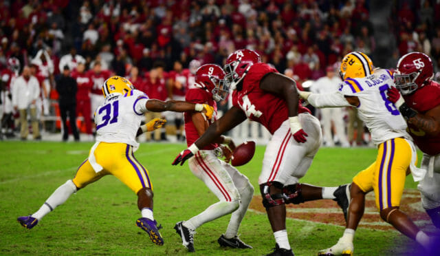 The Tigers allowed only six yards rushing on the night, but had trouble containing Alabama quarterback Bryce Young (302 yards and two touchdowns). LSU’s Max Johnson played the entire game and threw for 160 yards and two scores.
