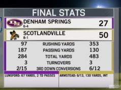 A great offense vs great defense – which would you rather have? It’s an interesting proposition with West Feliciana’s high-powered option offense going against a Jennings defense that has only allowed more than two scores once all season. They’ll be hard-pressed to replicate the Saints’ team speed in practice though, making it tough to prepare. It’s one thing to have your assignments squared away, it’s another when your assignment is an All-State track star turned quarterback who is pulling the ball down and blazing down the sideline or tossing a screen to another speedster with the nickname of “Smoke”.