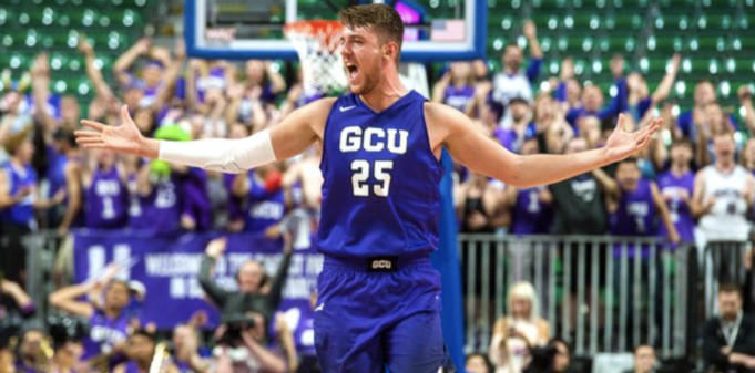 GCU defeated UMKC 77-74 to win their first ever Western Athletic Conference tournament game at the Orleans Arena in Las Vegas on Thursday afternoon.