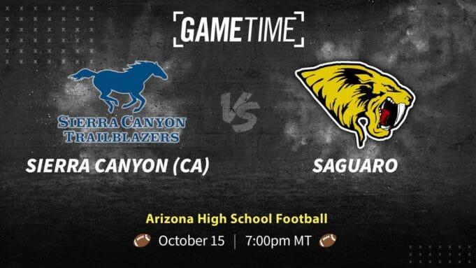 The Sierra Canyon Trailblazers (4-3) of Chatsworth, CA are traveling to Arizona to take on the Saguaro Sabercats (4-1) in our Arizona high school football featured GameTime matchup this week – Friday, Oct. 15 at 7:00 pm MT/9:00 pm...