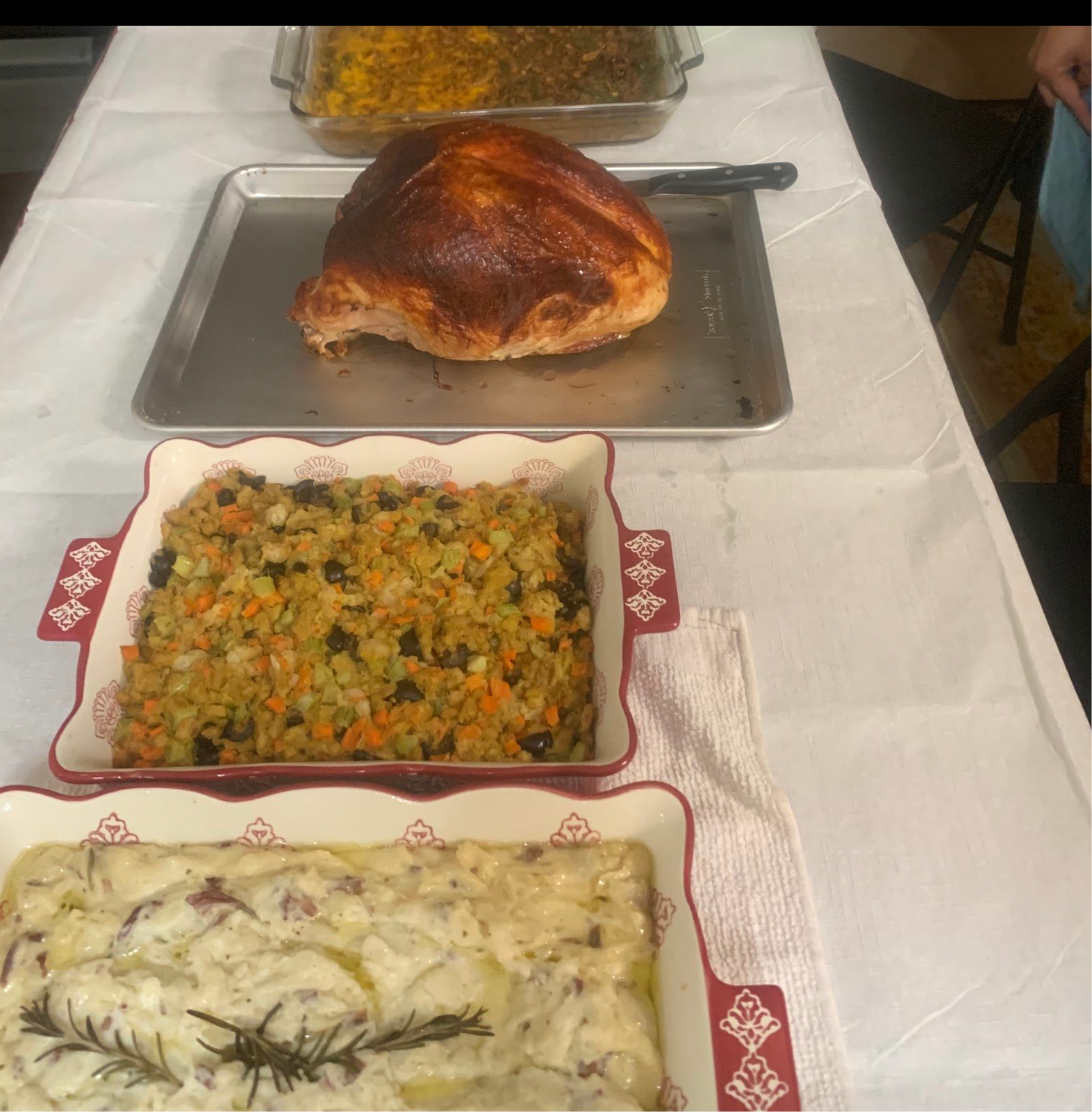 hosted Thanksgiving at my house this year, which was amazing and yummy. Just look at that beautiful turkey, mashed potatoes and my favorite, the stuffing!