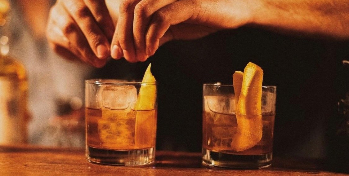 (Josh recommends about 15 seconds). Last but not least, garnish with orange and lemon peel and sip sip away. Best enjoyed with friends!