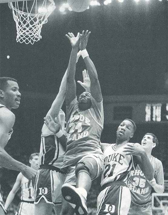 Kenny Green enforced the paint for successful Rhode Island Rams teams from 1985-90. The 6-8 forward was a dominating presence, finishing 11th in program history in scoring (1,724), fourth in rebounding (996), and amassing a program record 328 blocked shots — a tally that withstood a furious challenge from Hassan Martin (321) in recent years.