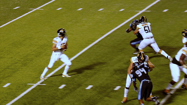 Showing that he has the speed to go along with the power, he took the pitch left and ran 82 yards for his third touchdown of the night to give the Cubs a two touchdown lead.